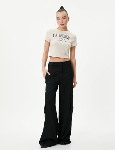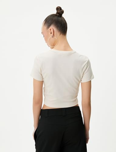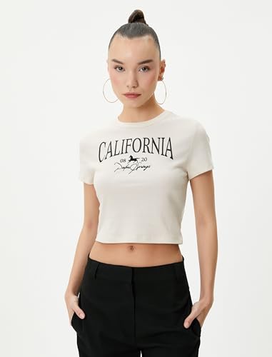 KOTON - تيشرت عصري بتصميم قصير وطباعة فارسيتي للنساء من كوتون، (قطعة واحدة)