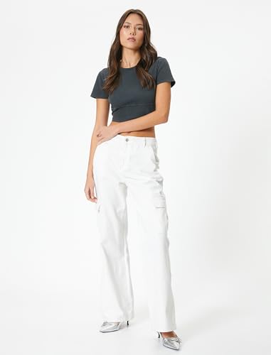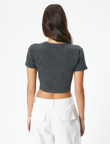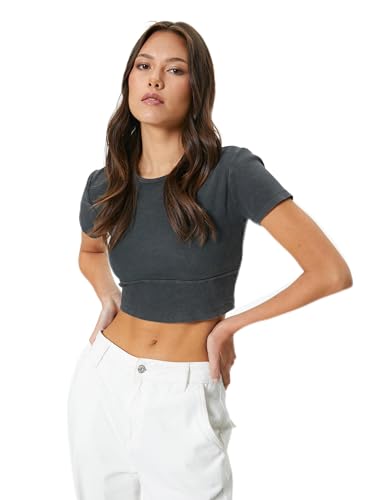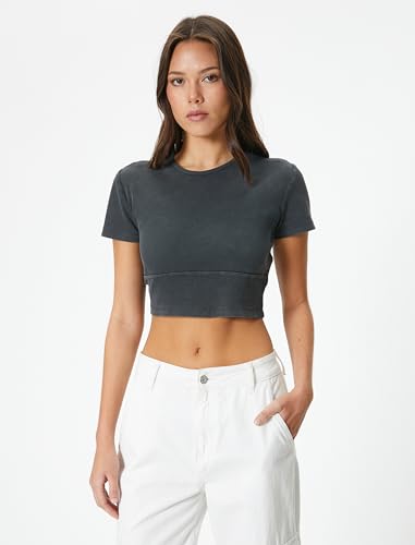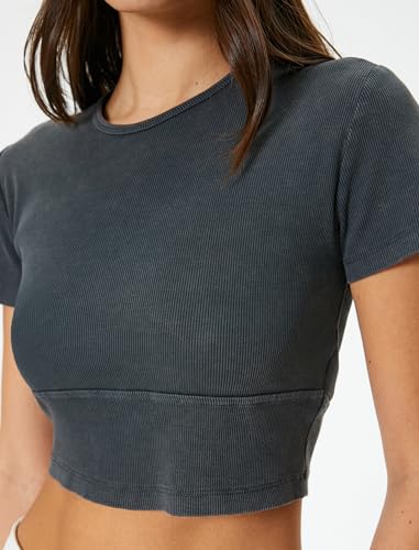 KOTON - توب كات مضلع قصير للنساء من كوتون، ملابس للشارع (عبوة من قطعة واحدة)