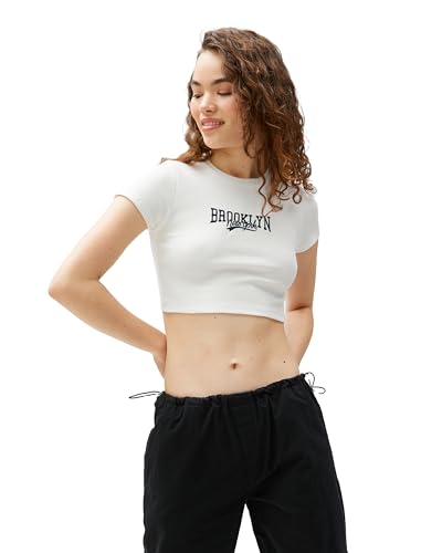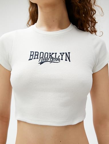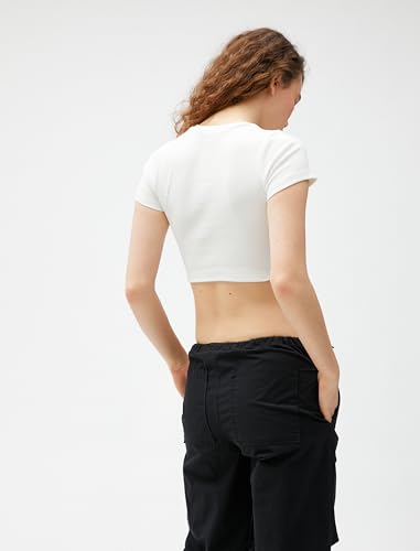 KOTON - KOTON womens Ribbed Short Sleeve Crew Neck Crop Tshirt
