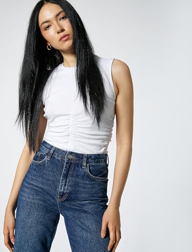 KOTON - KOTON womens Shirred Slim Fit Sleeveless Blouse Tanktop