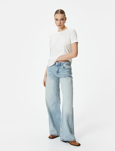 KOTON - تيشرت بيسيك حريمي بأكمام قصيرة ورقبة دائرية ضيقة من كوتون