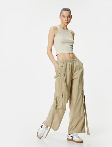 KOTON - بنطلون كارجو بقصة مستقيمة للنساء من كوتون عبوة قطعة واحدة