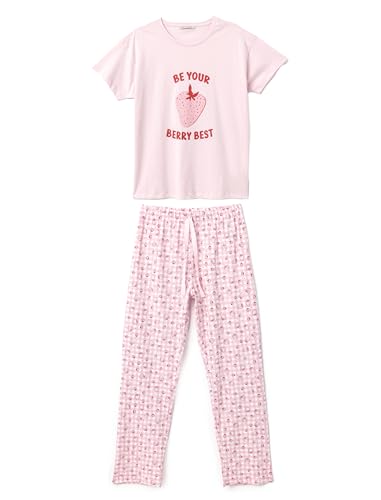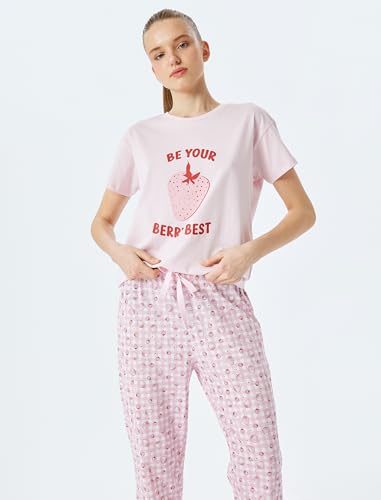 KOTON - طقم بيجامة مطبوع بالفراولة للنساء من كوتون (عبوة من قطعة واحدة)