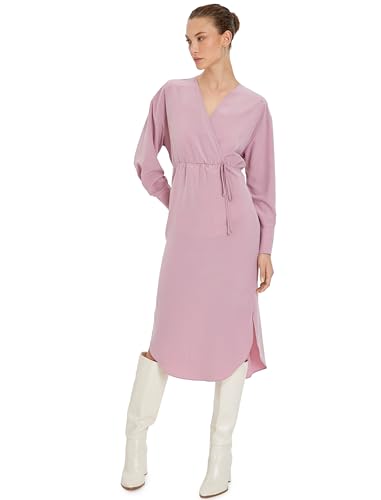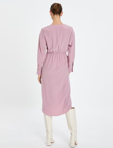 KOTON - KOTON womens Tie Detail Long Sleeve Midi Envelope Dress