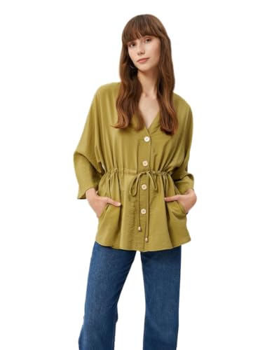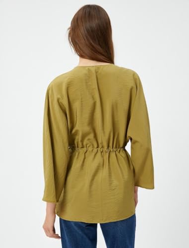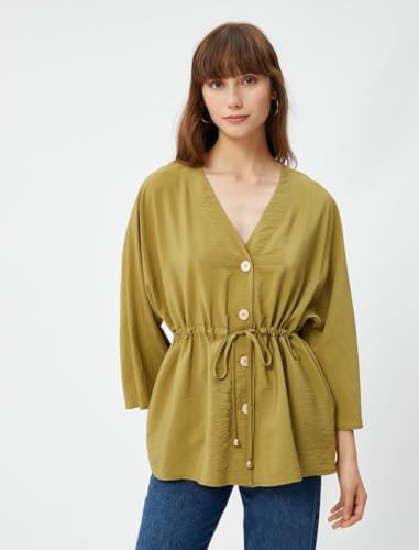 KOTON - KOTON womens Tissued Short Sleeve Tie Detail Buttoned Blouse Kimonos