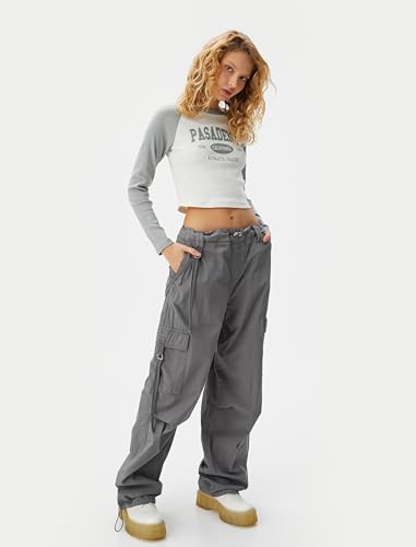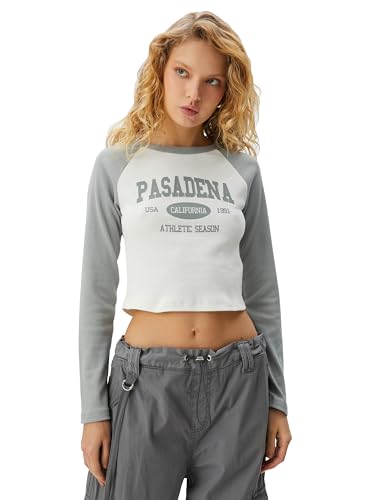 KOTON - KOTON womens Varsity Color Block Printed Long Sleeve Crew Neck Tshirt