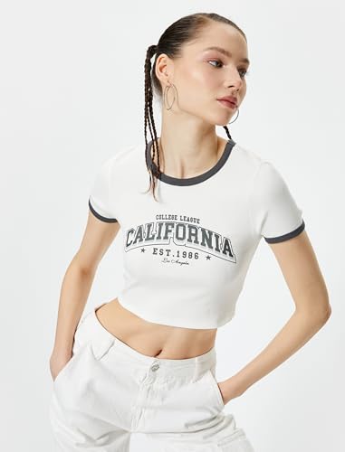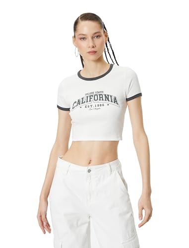 KOTON - تي شيرت فارسيتي قصير عصري للنساء من كوتون (عبوة من قطعة واحدة)