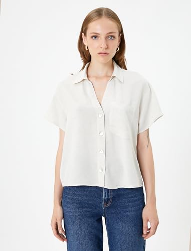 KOTON - KOTON womens Viscose Mix Classic Neck Buttoned Pocket Detail Short Sleeve Shirt