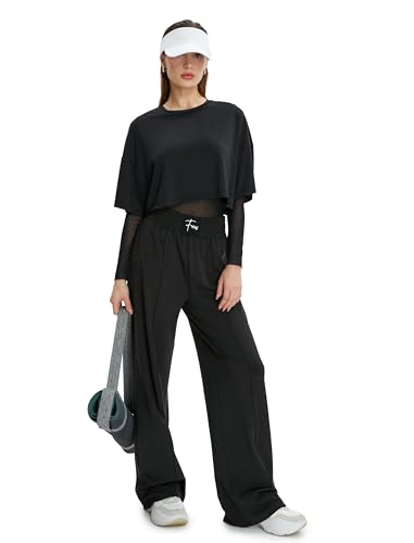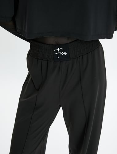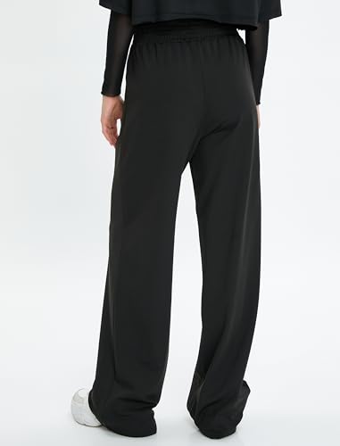 KOTON - بنطلون رياضي واسع بقصة وايد ليج للنساء من كوتون مرتفع الخصر مع تفاصيل مضلعة (عبوة قطعة واحدة)