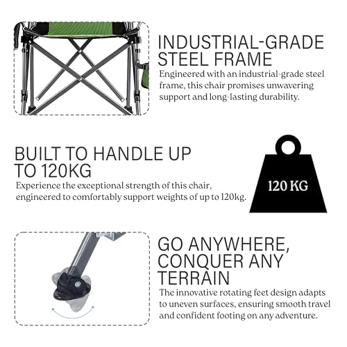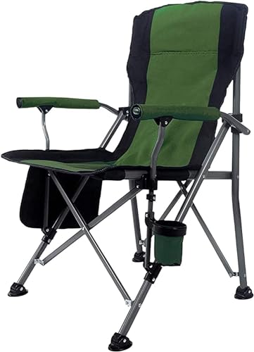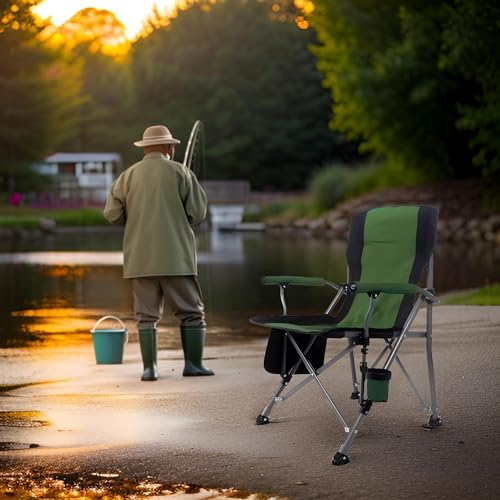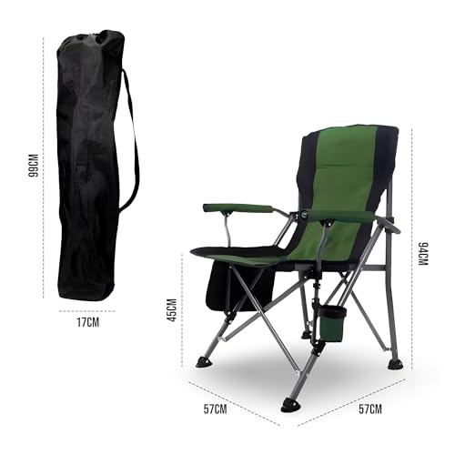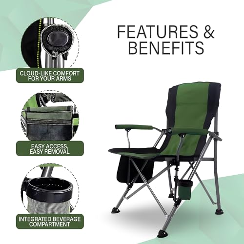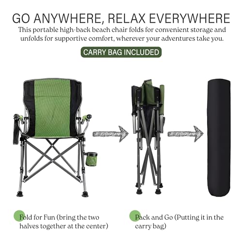KOVEO - كرسي تخييم محمول قابل للتجميع من كوفيو، كرسي حديقة مبطن بظهر مرتفع مع مسند للذراع، حامل اكواب وشنطة حمل، يتحمل وزن 145 كغم، كرسي تخييم خفيف الوزن وقابل للطي في الهواء الطلق، أسود وأخضر