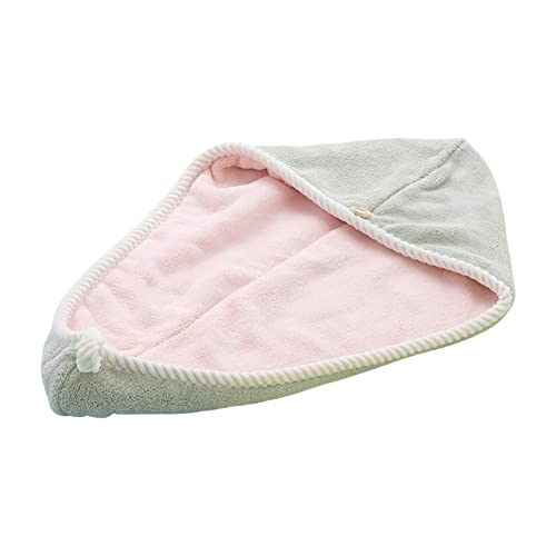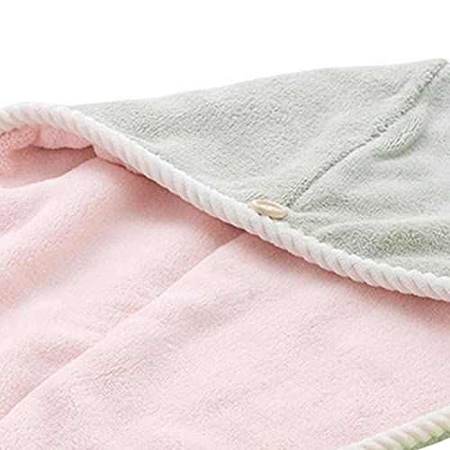 kowaku - فوطة شعر من المايكروفايبر ملفوفة على شكل عمامة لتجفيف الشعر، فوطة شعر مع زر من كواكو، أخضر مع وردي