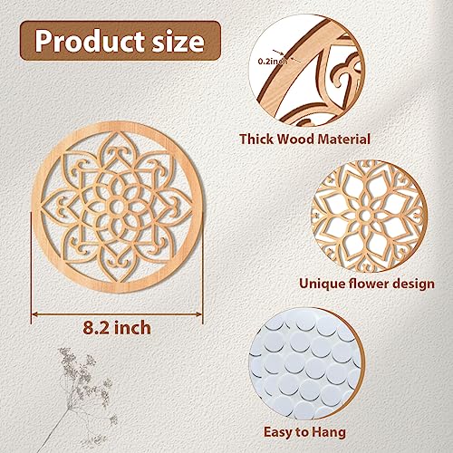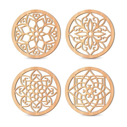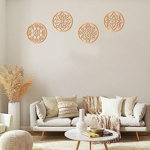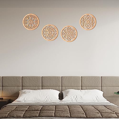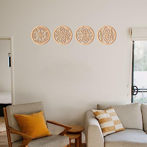 KOYILTD - ديكور حائط ريفي سميك من كويلتد، لوحة فنية منحوتة على شكل زهور، تصميم خشبي مجوف منحوت، ديكورات فنية معلقة لغرفة المعيشة وغرفة النوم و الطرق والمكتب والمطبخ (دائري، 4 قطع