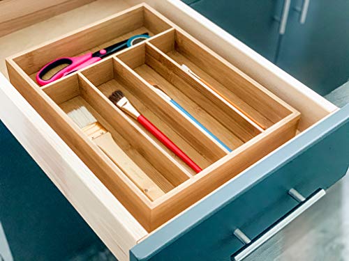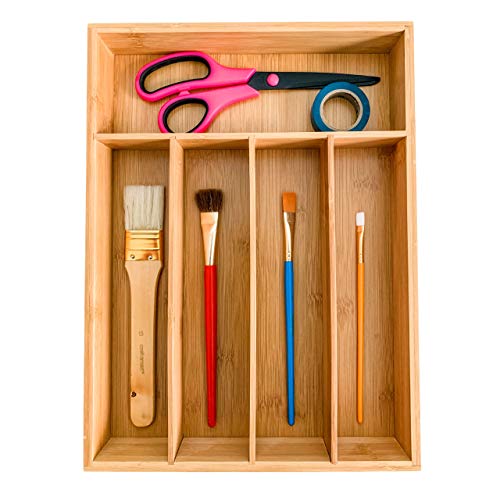 Kozy Kitchen - منظم أدراج من كوزي كيتشن مصنوع البامبو العضوي بنسبة 100% صينية أدوات مائدة وتناول الطعام للمطبخ والحمام والمكتب وغيرها مقسم مع 5 مساحات تخزين