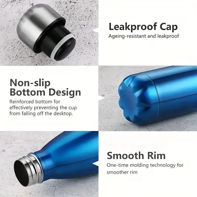 Qshop - كبوشوب®️ زجاجة مياه ثيرموس بريميوم محمولة من الستانلس ستيل 304 سعة 500 مل - قارورة معزولة بتفريغ الهواء للمشروبات الساخنة والباردة - مثالية للمنزل والمكتب والمدرسة والرياضة والتخييم (Coral blue)