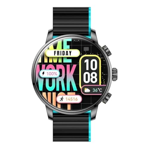 Generic - ساعة ذكية YFT2063EU بشاشة اموليد مقاس 1.43 بوصة مقاومة للماء حتى عمق 3 بار وخاصية إجراء المكالمات عبر البلوتوث ومراقبة معدل نبضات القلب وتشبع الأكسجين وأكثر من 100 وضع رياضي من كيه ار 2 ليمتد، أسود