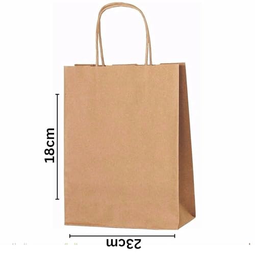 Generic - مجموعة أكياس ورق كرافت بمقاسات متعددة – 10 قطع مع مقابض للتسوق والهدايا والأعمال الصغيرة بأناقة مستدامة (بني ، 18x32 سم)