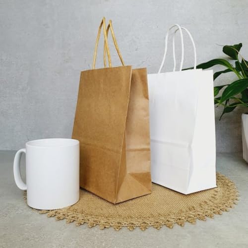 Generic - مجموعة أكياس ورق كرافت بمقاسات متعددة – 10 قطع مع مقابض للتسوق والهدايا والأعمال الصغيرة بأناقة مستدامة (ابيض ، 32x32 سم)