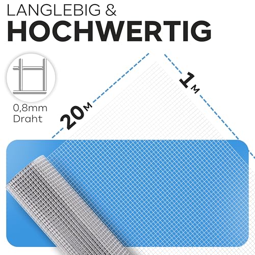 KrapTrap - شبكة سلكية مجلفنة من كراب تراب، 20 متر × 1 متر، 12 × 12 ملم، سلك ارنب قوي، شبكة فول، سلك طيور