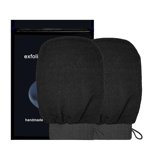 KRCIQMV - قفاز تقشير للجسم منشفة حمام قماش اصلية تستخدم للتقشير للاستخدام في الحمام والاستحمام قطعتين اسود مقاس واحد من كيه ار سي كيو ام