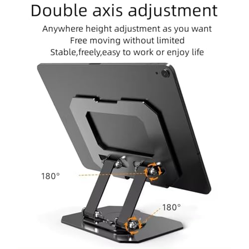 - قابل للدوران 360 درجة: صُمم الجزء السفلي من حامل التابلت بقرص دوار، والذي يمكن تدويره بسهولة بزاوية 360°، بغض النظر عن الزاوية التي تتواجد فيها، يمكنك تدويره وتعديله على الوضع الأنسب لك.