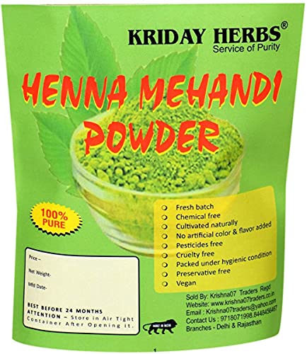 KRIDAY HERBS - بودرة حنة مهندي نقية وطبيعية من كريداي هيربس، تستخدم لتلوين الشعر وترطيب فروة الرأس بعمق، (500 جرام)، من أعشاب كريداي