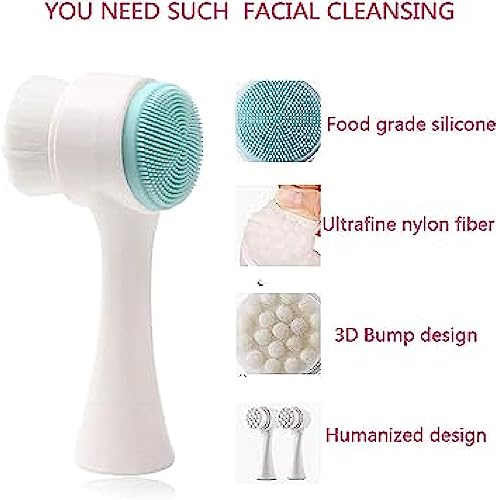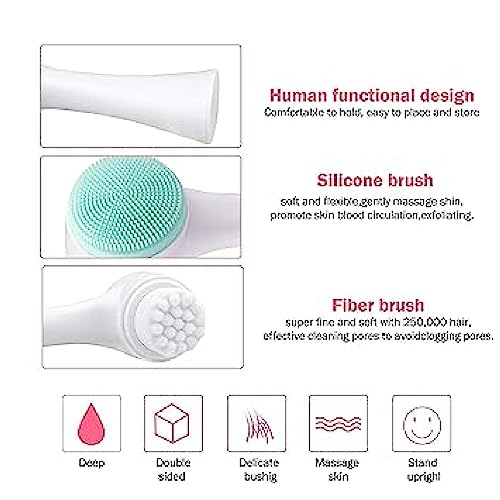 - [فرشاة تنظيف وجه مزدوجة الجوانب]: تحتوي فرشاة تنظيف الوجه المزدوجة على فرشاة من السيليكون الناعم على جانب واحد، والتي يمكن أن تقشر البشرة بسهولة وبشكل مريح، بينما يحتوي الجانب الآخر على شعيرات من المايكروفايبر التي يمكنها تنظيف البشرة بعمق وتجديد بشرة الوجه.