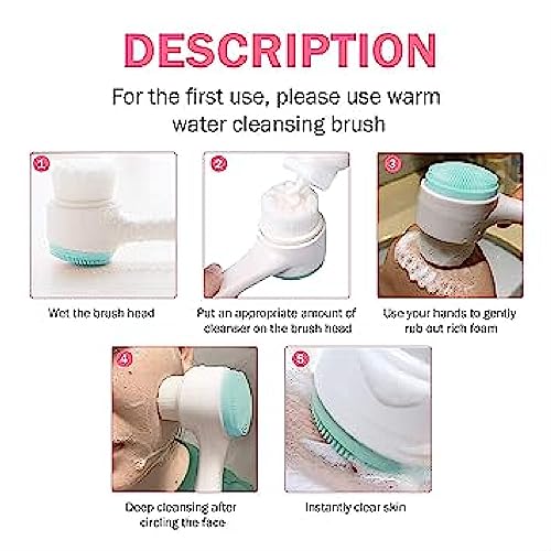 - [مريحة ومقاومة للماء]: فرشاة التنظيف هذه مجهزة بتصميم مقبض مريح، والذي يناسب يديك بشكل مثالي وغير قابل للانزلاق وهي سهلة الاستخدام. تصميم مقاوم للماء بزاوية 360 درجة يسمح باستخدام فرشاة تنظيف الوجه في الحمام أو حوض الاستحمام.