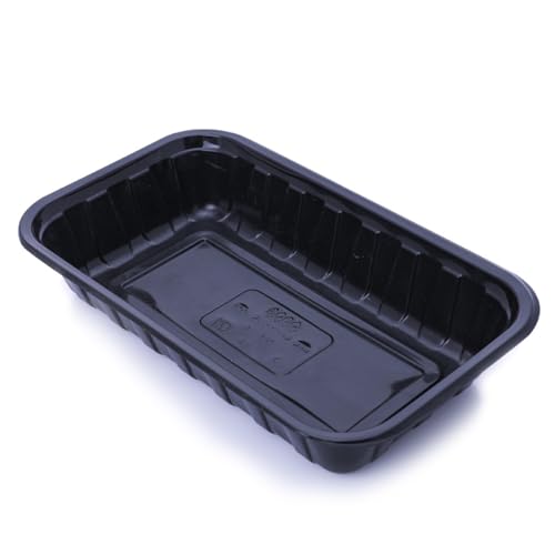 KRNO - علبة حفظ طعام بلاستيك سوداء من مادة البولي ايثيلين تيرفثالات مستطيلة مسطحة للاستعمال مرة واحدة، للمطاعم وتقديم الطعام، بأحجام 125/250/500 جرام/ 1 كجم من كرنو®، عبوة عميقة من 50 قطعة كل منها 1 كجم
