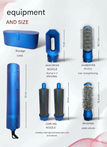- 5 ملحقات قابلة للتبديل: تأتي مع مجموعة متنوعة من الرؤوس (مجفف، فرشاة تنعيم، فرشاة تكثيف دائرية، وأسطوانتين لتجعيد الشعر "الكيرلي").