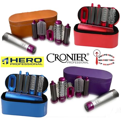 Cronier Professional - فرشة استشوار كرونير بروفيشنال احترافي ٥ في ١ مع فرشاة تصفيف، مجموعة أدوات تصفيف الشعر مع حقيبة شيك - الوان متنوعة - احمر و ازرق و برتقالي و بنفسجي (Purple)