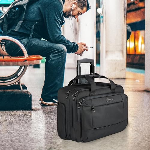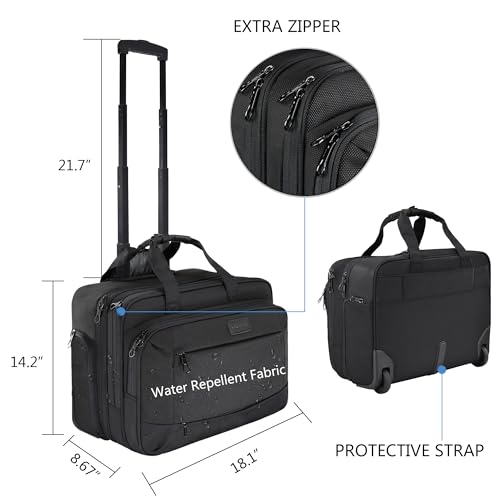 KROSER - كروسير شنطة لابتوب بعجلات للرجال والنساء للعمل تناسب حتى 17.3 انش كمبيوتر طاردة للماء مع جيوب بتقنية تحديد الهوية بموجات الراديو للسفر والمدرسة معدن أسود