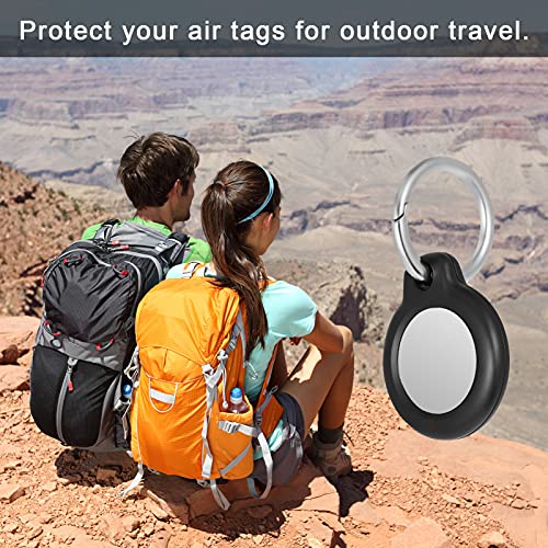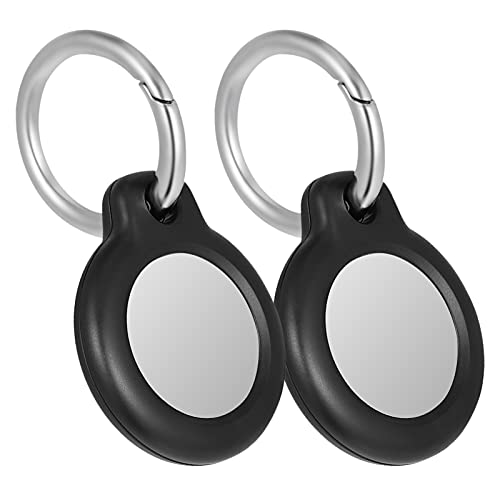 KroY PecoeD - قطعتان من حلقة مفاتيح لحافظة حماية ايرتاج من الجلد الطبيعي مع سلسلة مفاتيح، غطاء ايرتاج سهل الحمل (اسود)، بولي كربونات