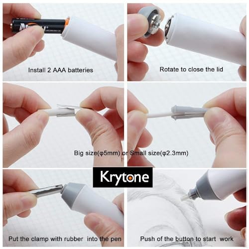 KRYTONE - مجموعة استيكة كهربائية اوتوماتيكية من كريتون® مع 22 قطعة إضافية قابلة للاستبدال (10 قطع بقطر 2.3 ملم و12 قطعة بقطر 5 ملم)