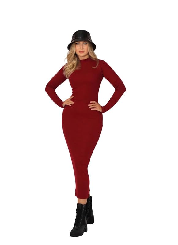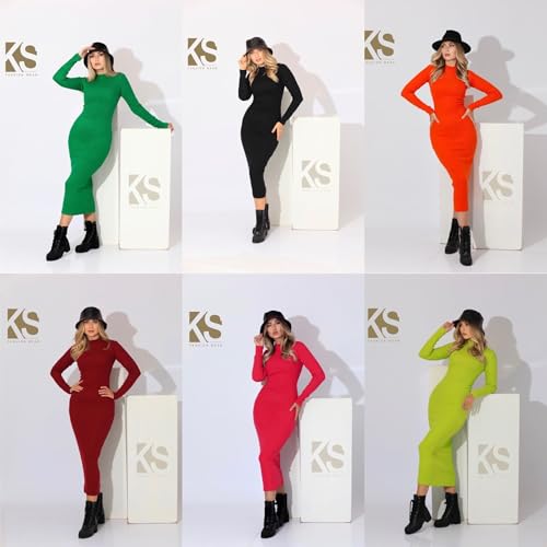 KS Fashion Wear - فستان سلينكي متوسط الطول برقبة عالية للنساء