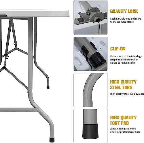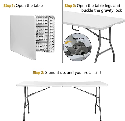 - متعددة الأغراض: مثالية للنزهات في الهواء الطلق أو طاولة حفلات أعياد الميلاد أو طاولة المأدبة أو طاولة الطعام القابلة للطي أو طاولة الشواء المحمولة أو طاولة الألعاب أو كطاولة طعام قابلة للطي أو طاولة عرض بلاستيكية قابلة للطي أو طاولة دراسة أو مكتب مناسبات داخلي