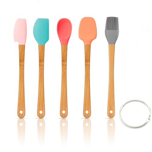 KSENDALO - ملعقة مسطحة صغيرة من السيليكون للاستخدام في المطبخ، مقشطة مطاطية صغيرة مقاومة للحرارة لخبز البسكويت مع مقبض من البامبو من كسيندالو، ملونة