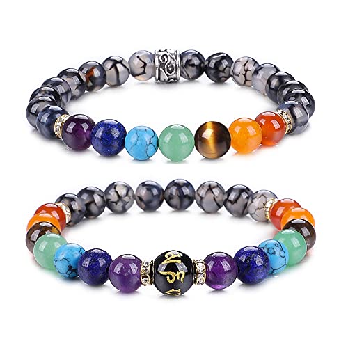 KSQS - سوار باحجار كريستال كريمة طبيعية بموزع زيوت عطرية لعلاج القلق وموازنة الطاقة والتامل بالشاكرا واليوجا، اساور للنساء من كيه اس كيو اس، 7 حجر، 8 ملم, حجر, حجر