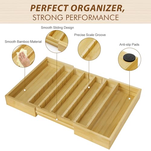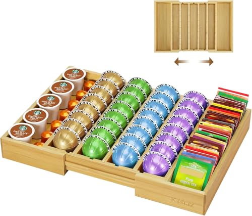 Kssiaz - درج حامل كبسولات القهوة، حامل كبسولات كيه كوب قابل للتوسيع متوافق مع كبسولات فيرتو، فواصل قابلة للتعديل، منظم درج لكبسولات كيه كوب من الخيزران لركن القهوة والمكتب والمطبخ من كاسياز (خيزران)