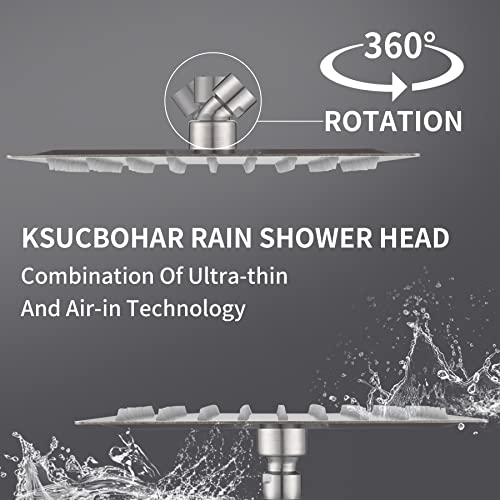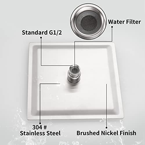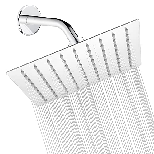 KSUCBOHAR - رأس دش مطر مربع من كاسوكبوهار بمقاس 20 سم، رأس دش عالي الضغط بفلتر من فولاذ مقاوم للصدأ 304، يحتوي على 81 فوهة سيليكون ناعمة مقاومة للانسداد (نيكل مصقول)