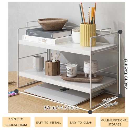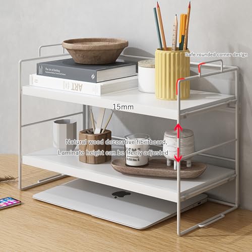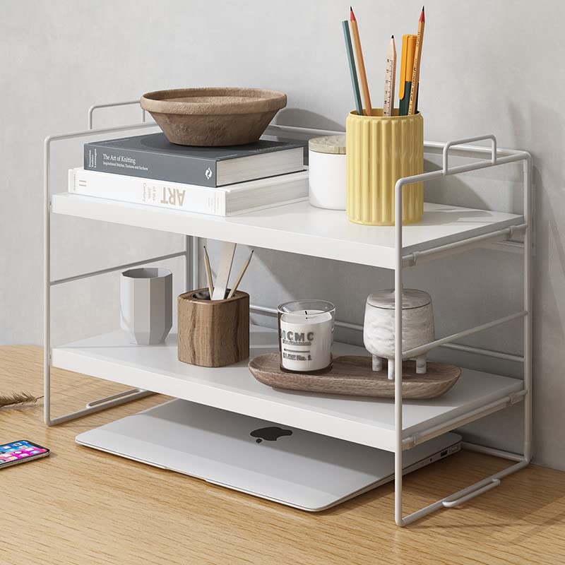KTAbedding - رف منظم لسطح المكتب من كيه تي ايه بيليف قابل للتعديل من طبقتين للمكتب والمطبخ وغرفة النوم والحمام وسطح المكتب والسكن الجامعي (اطار ابيض + الواح بيضاء)