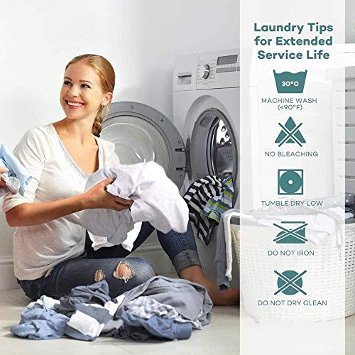 - سهل العناية: يُغسل في الغسالة بالماء البارد. بعد الغسيل، علقه ليجف أو ضعه في مجفف بدرجة حرارة منخفضة. لا حاجة للكي لأن غطاء اللحاف مقاوم للتجاعيد وقوي بما يكفي لتحمل دورات الغسيل والتجفيف المتعددة. لا تستخدم المبيضات. لا تخلط وتغسل مع الملابس الأخرى.