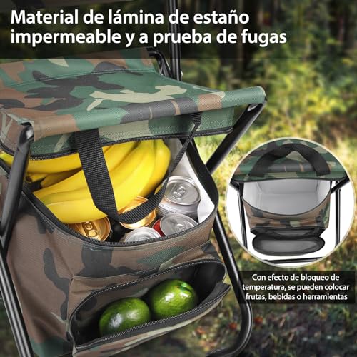 KTMOUW - كرسي من كتماو للتخييم وصيد السمك والأنشطة الخارجية، مع حقيبة تخزين حرارية وجيب أمامي، مصنوع من الفولاذ المقاوم للصدأ والقماش، قابل للطي ومقاوم للماء