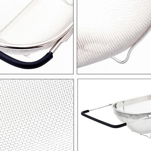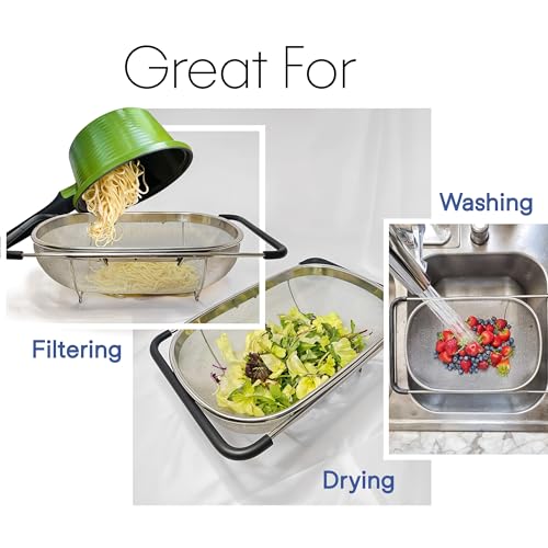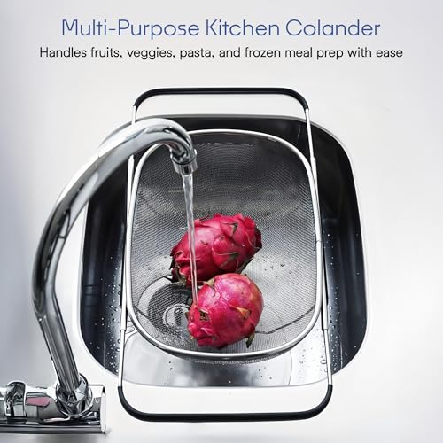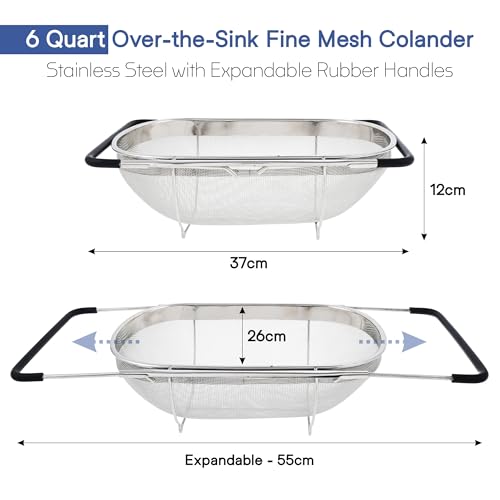 Kuber Industries - كوبر اندستريز مصفاة شبكية من فاين 6 كوارت فوق الحوض من الستانلس ستيل مع مقابض مطاطية قابلة للتوسيع | سلة غسيل الفواكه والخضروات | سلة مصفاة طعام للمطبخ | فضي