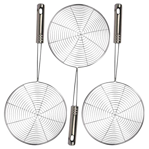 Kuber Industries - كوبر اندستريز مقشة/مصفاة ستانلس ستيل متعددة الاستخدامات 18 سم للطبخ والقلي من هارت هوم - عبوة من 3 قطع (فضي)