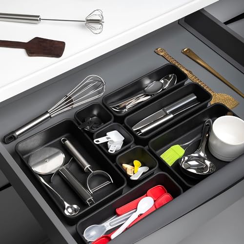 Kuber Industries - كوبر اندستريز مجموعة من 24 منظم ادراج مكياج متعدد الاغراض للتخزين | مقسم ادراج للمطبخ والحمام | مثالي لاواني التجميل والاغراض الشخصية | اسود غير لامع