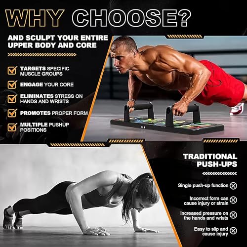 - استهداف متعدد للعضلات: صُمم لوح تمارين الضغط هذا لتحسين تمرين الضغط بفضل المواضع الملونة المحددة للتمارين التي تستهدف مجموعات عضلية مختلفة. تشمل هذه المواضع تمارين عضلات الصدر والكتفين والظهر والعضلات ثلاثية الرؤوس، مما يسمح لك بتخصيص تمارينك وتقوية الجزء العلوي في جسمك.
