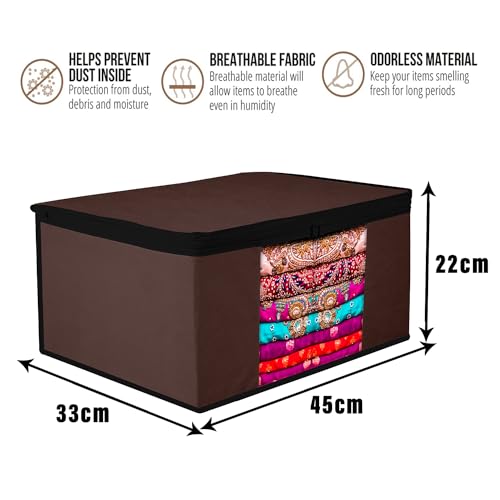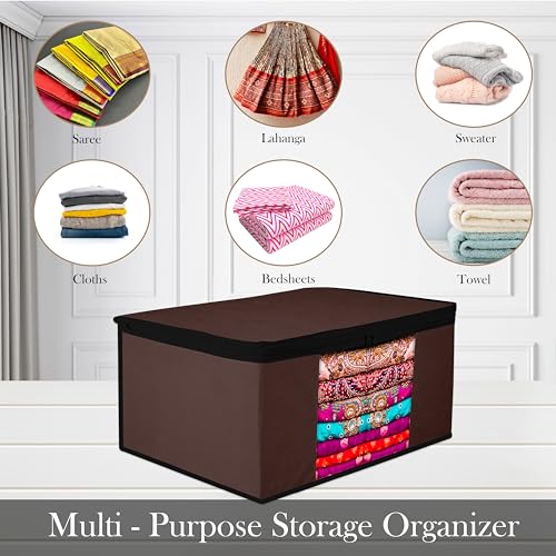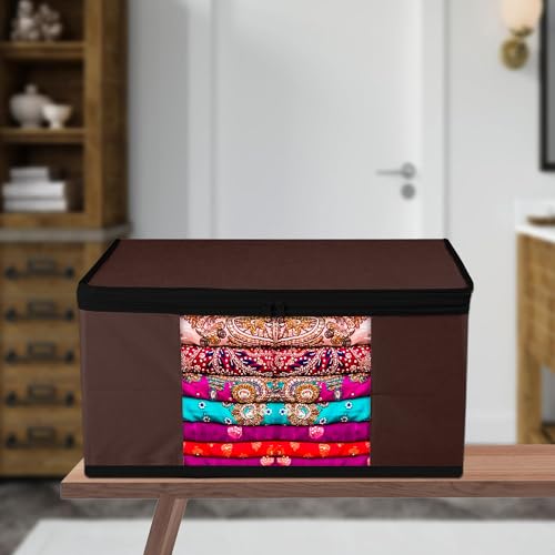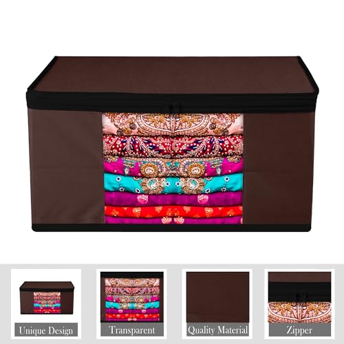 Kuber Industries - حافظة ساري بقفل سوستة، شنطة تخزين ملابس، منظم دولاب للبدلات، حافظة ساري بنافذة شفافة مع إطار أسود سادة، 22.86 سم، عبوة من 3 قطع، بني من كوبر اندستريز
