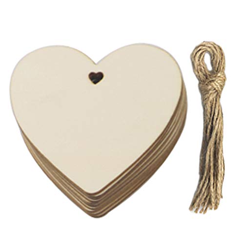 Kubert - قطع خشبية طبيعية من كوبيرت، قطع خشب غير مصبوغة مُثقبة مسبقًا على شكل قلوب، مخصصة للأعمال اليدوية وزينة الكريسماس، للطاولات وتعليق الزينة في العطلات، 100 قطعة