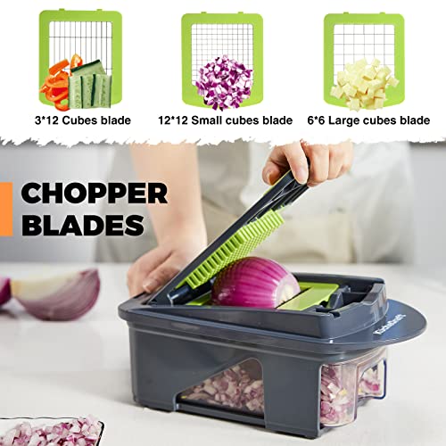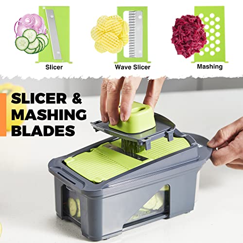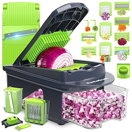 KucheCraft - قطاعة خضروات من كوتشي كرافت، قطاعة بصل 15 في 1، قطاعة خضروات حلزونية، قطاعة خضروات احترافية مع 11 شفرة، قطاعة خضروات للمطبخ مع حاوية، قطاعة فواكه وبصل بطاطس