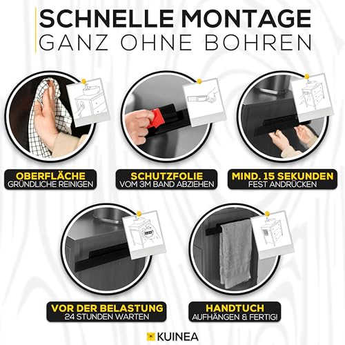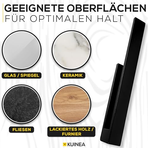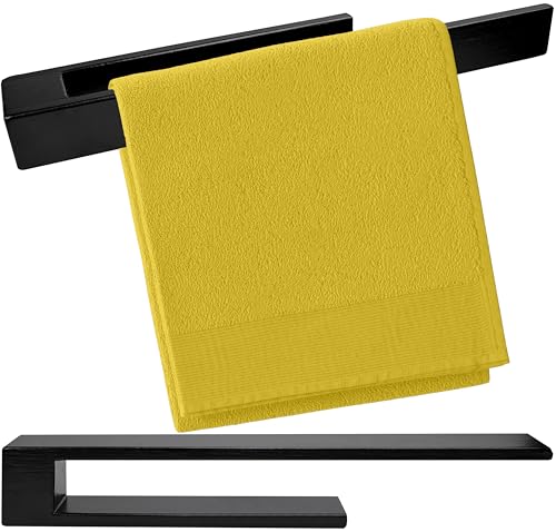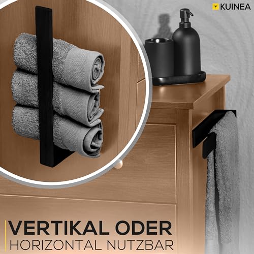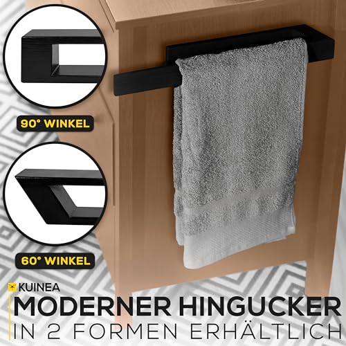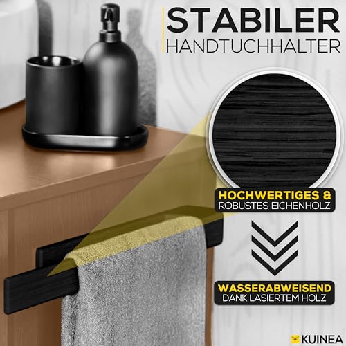 KUINEA - حامل مناشف من الخشب الاسود من كوينيا® - حامل مناشف يد عصري من خشب البلوط 100% للحمام والمطبخ، لا يحتاج الى ثقب، حامل مناشف من خشب البلوط، حامل مناشف حائط خشبي اسود 90 درجة